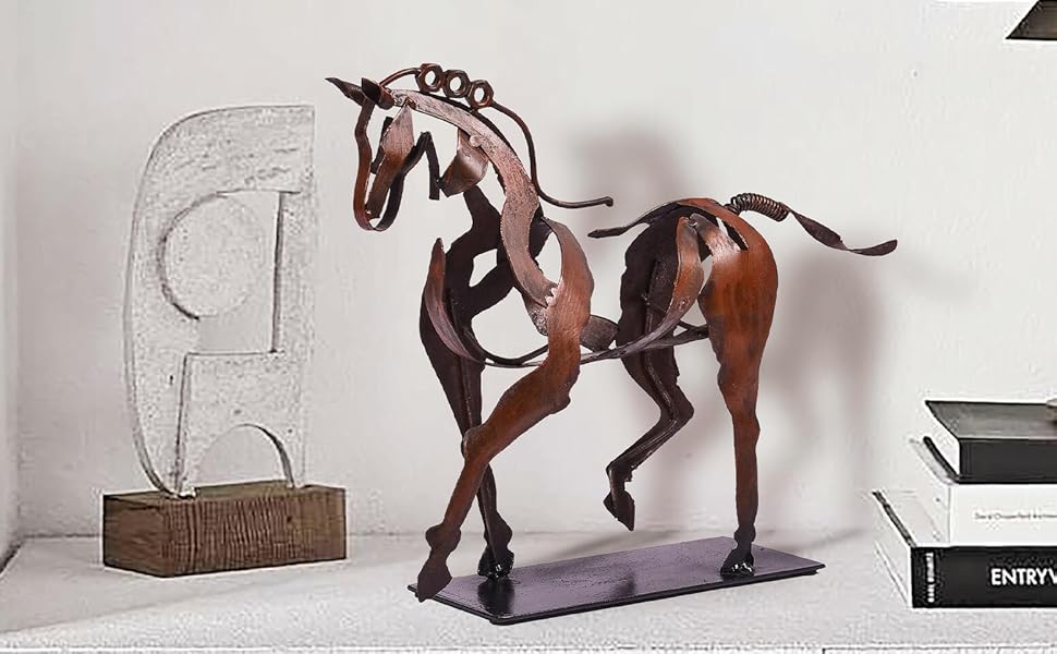 Amazon Com Sunblogs Art Metal Horse Statue Decor 100 Handmade Strong Modern Horse Sculpture Handicraft Rustic Metal Statue Decorations Gift For Home Office Desk Figurine Blue Home Kitchen
